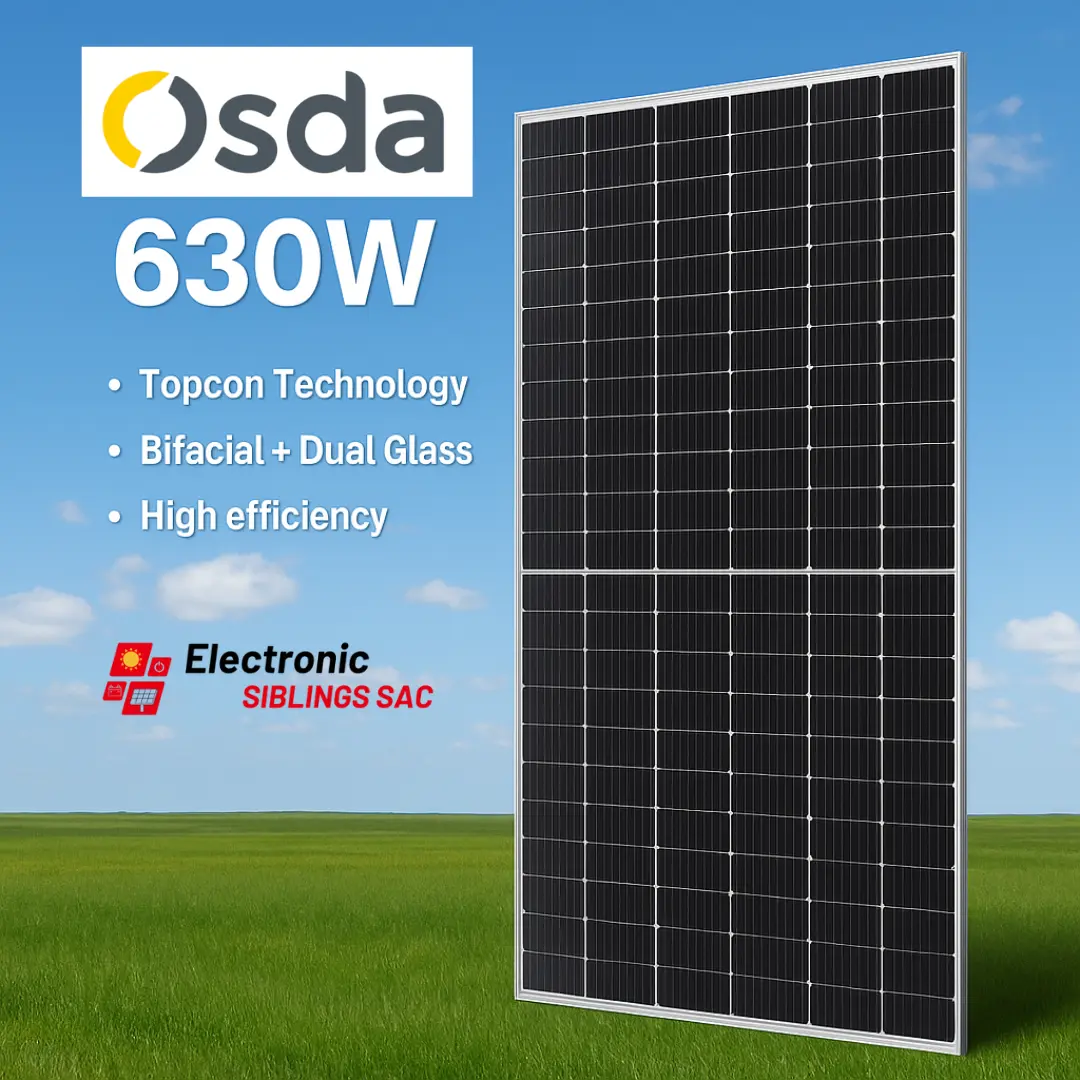 En Electronic Siblings, somos distribuidores de confianza de paneles OSDA en el Perú. Ofrecemos atención personalizada, precios competitivos y envío a todo el país. Si buscas un panel de alto rendimiento, el OSDA Topcon de 630W es tu mejor elección.